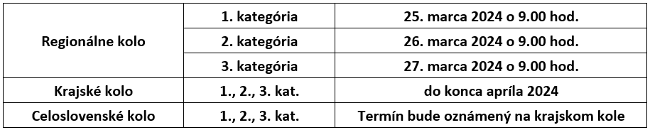 3. kategória – žiaci SŠ, gymnázií a 5. – 8. roč. osemroč. gymn., 2. – 5. roč. päťroč. gymn.