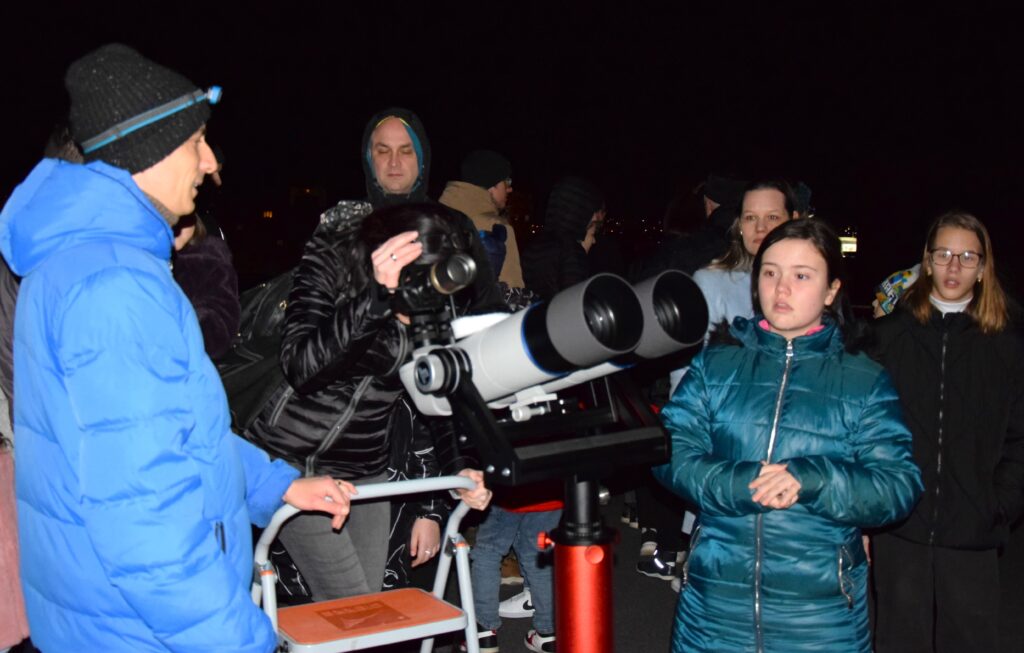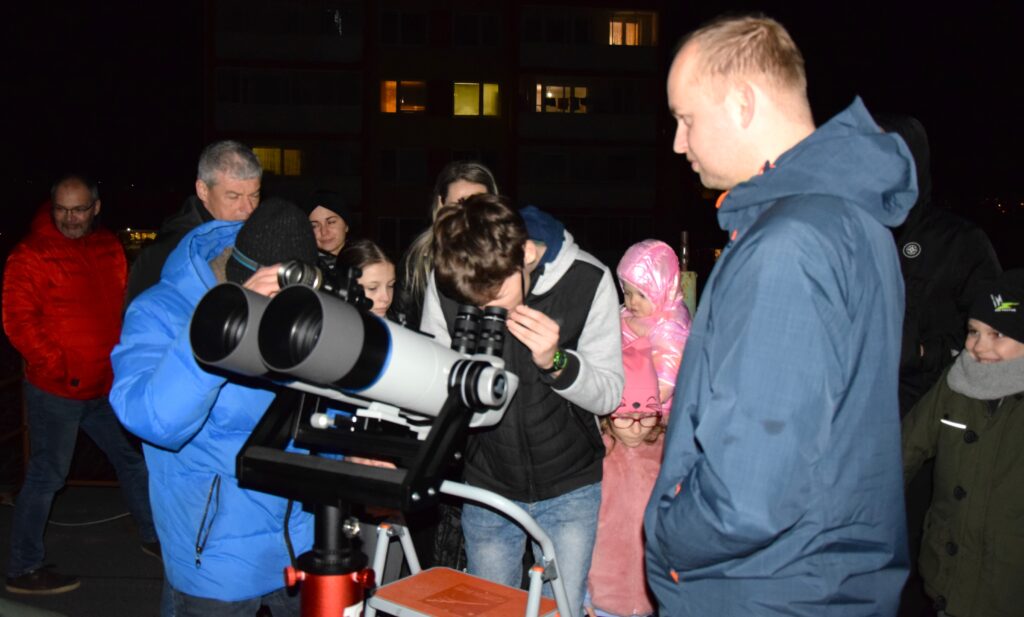 Jasné, i keď chladné počasie prialo po zotmení pozorovaniam objektov hviezdnej oblohy z kupoly a terasy hvezdárne. Návštevníci si vypočuli výklad o orientácii na nočnej oblohe a vychutnali pohľad cez teleskopy na kométu 12P/Pons-Brooks, Mesiac v prvej štvrti, Veľkú hmlovinu v Orióne či otvorené hviezdokopy a galaxie. Popri sprievodnom slove odborných pracovníkov hvezdárne asistovali pri pozorovaniach aj mladí členovia astronomického krúžku pri Vihorlatskej hvezdárni v Humennom a členovia MO SZA.