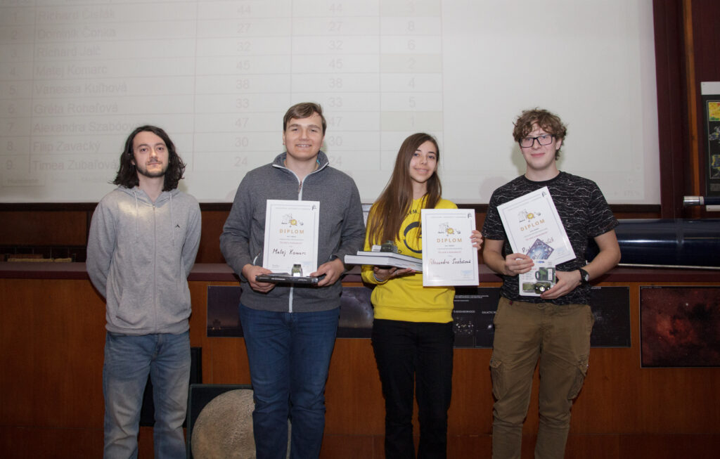V regionálnom kole, ktoré zastrešuje okresy Humenné, Medzilaborce a Snina, si mladí záujemcovia o astronómiu otestovali svoje vedomosti z oblasti všeobecnej astronómie, astrofyziky, histórie astronómie, kozmonautiky a astronomických prístrojov, v zmysle okruhov určených SÚH v Hurbanove. Súťaž je rozdelená do troch kategórií. V prvej kategórii (žiaci 4. – 6. ročníka ZŠ) bolo zastúpených 8 súťažiacich, v druhej kategórii (žiaci 7. – 9. ročníka ZŠ) 10 a v tretej 9 súťažiach (študenti SŠ). Vyhodnotenie prebehlo v každej kategórii za všetky tri okresy pre zachovanie úrovne kvality súťaže. Nižšie nájdete tabuľku výsledkov a fotogalériu z priebehu súťaže.