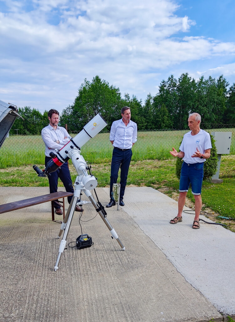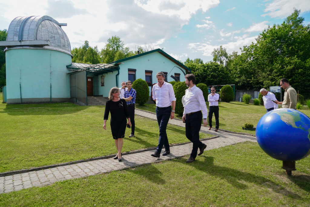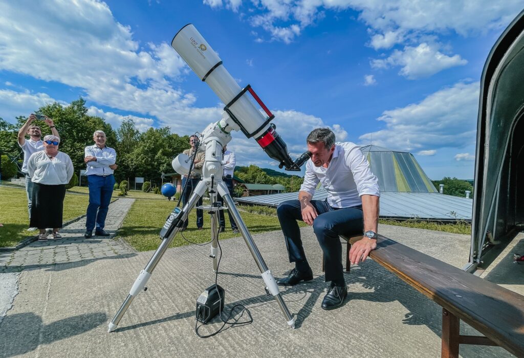 Jednou z hlavných tém pracovných stretnutí v okrese sú aj aktuálne, či budúce investície a projekty, ktoré majú za cieľ zlepšiť život a vybavenosť okresu. Práve prebiehajúci projekt našej hvezdárne „Cez Poloniny ku hviezdam“ z Plánu obnovy prispieva k zlepšeniu technického vybavenia a infraštruktúry na našom observatóriu. Nový solárny teleskop „Heli“ obstaraný z tohto projektu si vyskúšal aj pán predseda. Popri pozorovaní a prehliadke v kupole pri Vihorlatskom národnom teleskope absolvoval program v planetáriu pod umelou nočnou oblohou a nahliadol aj do nového Výskumno-prezentačného centra parkov tmavej oblohy v Karpatoch vybudovaného v rámci projektu „Karpatská hviezdna dráha“ z programu ENI.