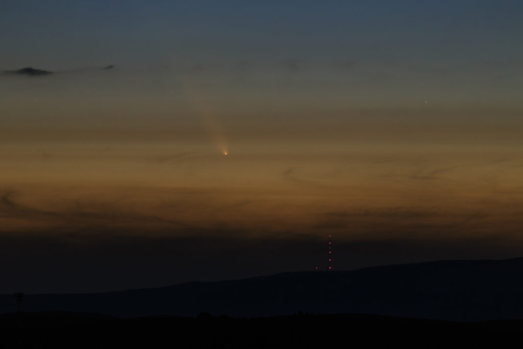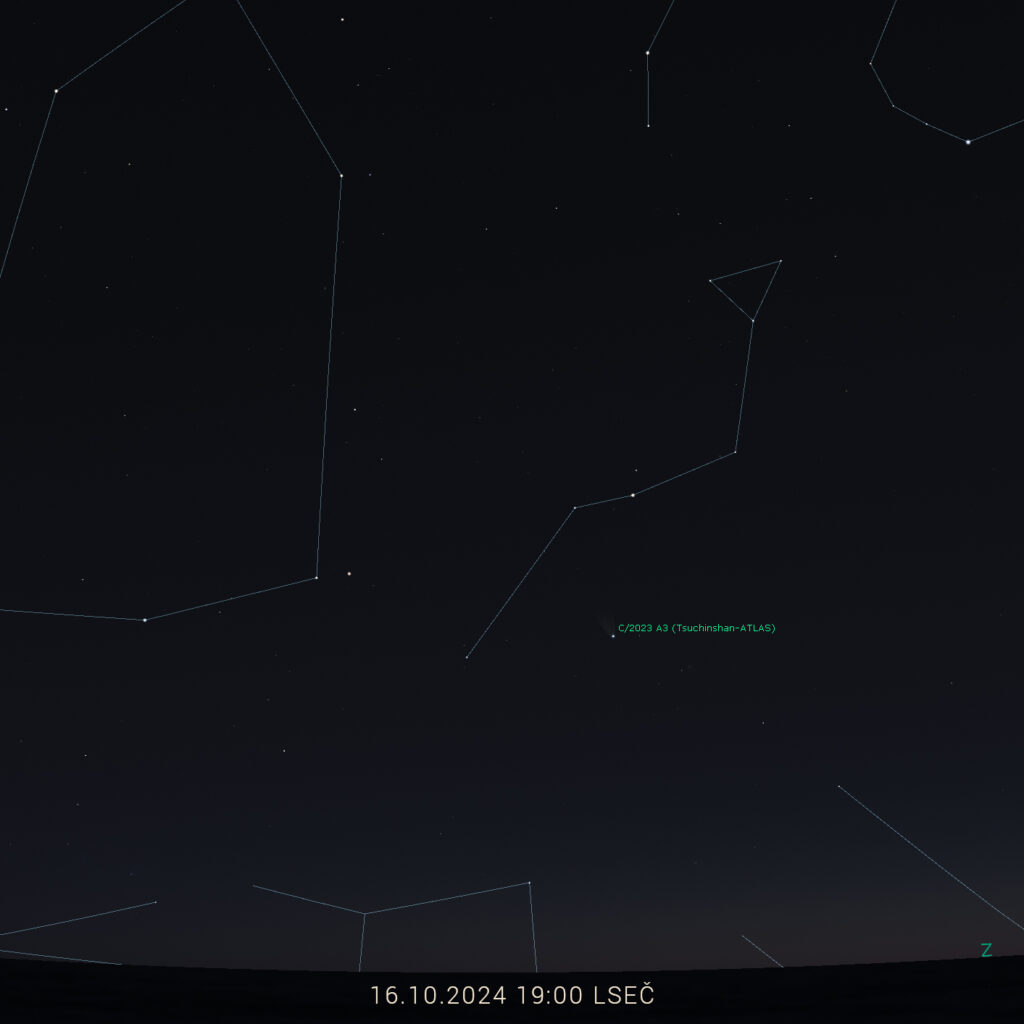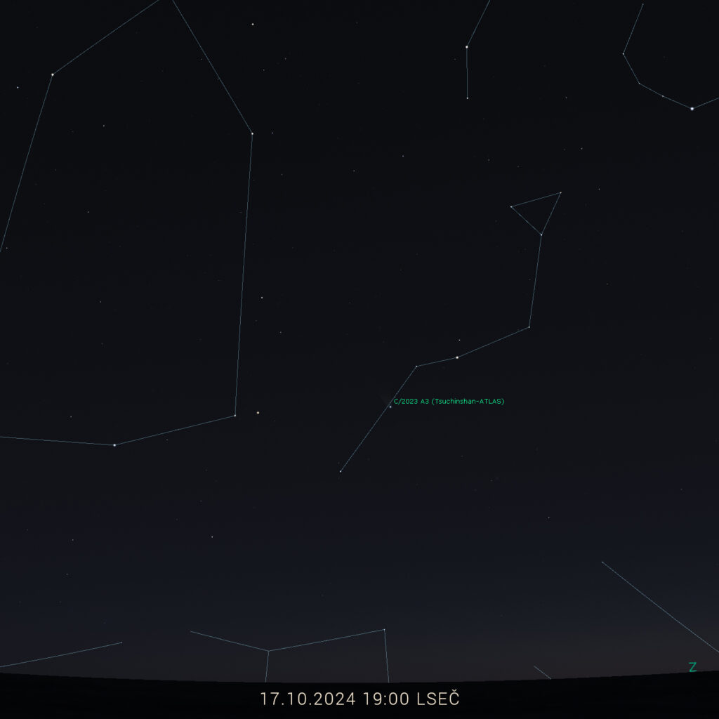 V súčasnosti najviac spomínaným astronomickým objektom oblohy je kométa C/2023 A3 (Tsuchinshan-ATLAS), ktorej fotografie zapĺňajú sociálne siete a webové stránky. Počasie nám umožnilo kométu pozorovať aj odfotografovať z Humenného 13. a 14. októbra 2024.